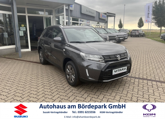 • Grauer Suzuki Vitara Hybrid in Front-Seitenansicht